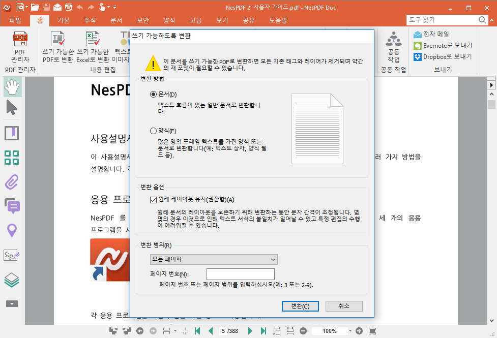 특히 NESPDF의 OCR 기능은 스캔 문서나 이미지 파일에 포함된 텍스트를 정확하게 인식하여 편집 가능한 형태로 변환하는 데 탁월합니다. 이를 통해 종이 문서의 디지털화 및 관리가 용이해지며, 문서 작업 효율성을 크게 향상시킬 수 있습니다. 또한, 다양한 파일 형식으로의 변환 기능을 통해 PDF 문서를 다른 프로그램에서 활용하는 데 제약이 없습니다.