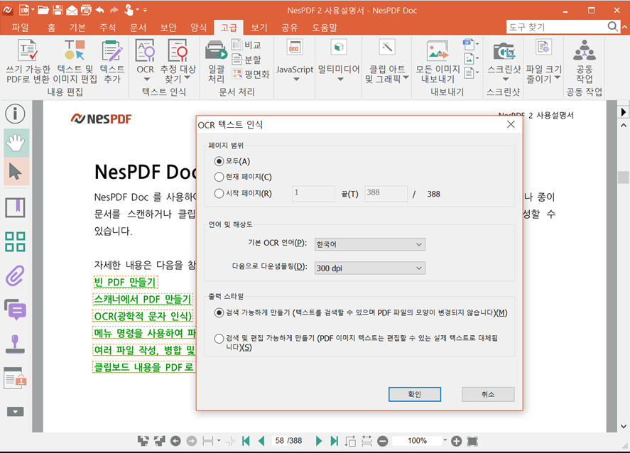 - OCR (광학 문자 인식) 기능: 스캔된 PDF 파일 또는 이미지 파일에서 텍스트를 추출하여 편집 가능한 텍스트로 변환합니다.